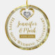 Elegante metallische Imitate mit goldfarbenem Kreis und weißem Diamant und goldenen Herzen auf weißem Hintergrund.