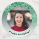 Chic Falling Parties scintillant verte avec dégradé vert, étoiles brillantes et photo. Idéal pour un 90ème anniversaire amusant.
