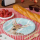 Happy Animal with Blume in Blue Forest Deer Pappteller