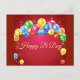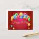 A vibrant birthday card overflowing with colorful balloons, confetti, and party sparkle. The elegant “Happy B Day” script pops against a bold red background, creating a cheerful, modern design perfect for any celebration.