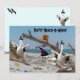 Halloween Strandszene mit Meerjungfrau-Skelett, Kürbiskugel, Pelikane mit Hexenhüten. Spaß und Einzigartig. Aktualisieren oder löschen Sie den gesamten Text