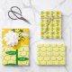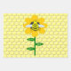 Dieses phantastische Geschenkpacker-Set zeigt ein grafisches Bild einer niedlichen gelben Hummel mit schwarzen Streifen, Augen, Antennen und Beinen. Es hat hübsche blaue und weiße Flügel. Die Biene sitzt inmitten einer goldgelben Sonnenblume. Die Blume hat einen grünen Stiel und drei Blätter. Die Meldung "Happy Bee Day" erscheint auf den drei Blätter verteilt. Der Hintergrund besteht aus einem gelben Wabenmuster.