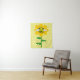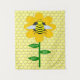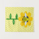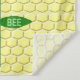 Dieser phantastische Wandteppich zeigt ein grafisches Bild einer niedlichen gelben Hummel mit schwarzen Streifen, Augen, Antennen und Beinen. Es hat hübsche blaue und weiße Flügel. Die Biene sitzt inmitten einer goldgelben Sonnenblume. Die Blume hat einen grünen Stiel und drei Blätter. Die Meldung "Happy Bee Day" erscheint auf den drei Blätter verteilt. Der Hintergrund besteht aus einem gelben Wabenmuster.