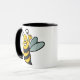 Eine niedliche Cartoon-Biene mit einem großen, fröhlichen Lächeln und hallo. Dies ist eine originelle Abbildung von mir (nicht Clip Art). Das Motiv wird auf beiden Seiten der Tasse wiederholt.