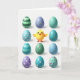 Designed with a cheerful spring scene, this card features a round, animated yellow bird centered on a bright white background, with wide eyes, rosy cheeks, and tiny wings held slightly open as if reaching out to a close friend. Around it sits a tidy grid of twelve decorated eggs, creating a balanced frame that feels like a shared little celebration 🐰. The palette stays soft and pastel, mixing gentle blues, greens, and purples with pops of sunny yellow. Several eggs show white or yellow polka dots, while others carry neat horizontal stripes, small geometric shapes, or tiny floral clusters with pink blossoms and green leaves 🌷. Soft, diffused lighting adds mild shadows under each egg and beneath the bird, giving the shapes a smooth, slightly glossy look. A short Easter greeting appears near the top in a light, friendly color, with smaller text placed below in a matching tone. The final layout shows the yellow bird in the middle, surrounded evenly by the twelve patterned eggs on the white backdrop.