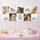 Personalisierter Geburtstagsbanner mit stylishem, weißem Hintergrund, der in jede beliebige Farbe verändert werden kann, 5 individuellen Fotos, Goldgläser, Beigläser und einer modernen, leicht anpassbaren Geburtstagsschablone.