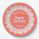 Happy Birthday 70. Coral/White Number Pattern Pappteller