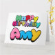 Farbiger "Happy Birthday Amy" Bubblegum-Text.