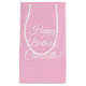 Herzlichen Glückwunsch Geburtstag benutzerdefinierte Skriptname Text hellrosa personalisierte Geschenktasche.