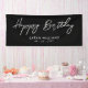 Erstellen Sie Ihr eigenes, individuelles Geburtstagsbanner mit modernem Script-Kalligrafie-Happy-Geburtstag und minimalem Typografiknamen und Datumsdesign für personalisierte Geburtstagsdekoration.