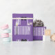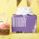 Weißer Geburtstagstext auf lila Hintergrund mit schwarzen Ballons, Funkeln und Kerzen. Die Hintergrundfarbe kann geändert werden.