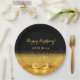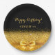 Elegant, klassisch, glamourös und feminin. Ein goldfarbener Bogen mit goldenem Glitzer und Funkeln, ein bisschen Bling und Luxus zum Geburtstag. Schwarzer Hintergrund. Mit dem Text: Happy Birthday! + Datum