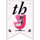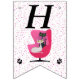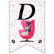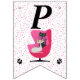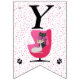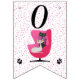 Diese Fahne geformt Banner Happy Birthday Banner ist weiß mit rosa Polka Punkte und eine schwarze und eine weiße Katze sitzend in einem hellrosa Stuhl Mitte des Jahrhunderts mit zwei Katzenpaw Drucke. Passen Sie den Geburtstagstext und das Geburtstagsjahr mit den Vorlagen an.