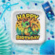 Ein bezaubernder kleiner Drache mit Happy Birthday.