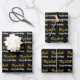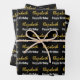 Happy Birthday Gold Script Name Schwarz und Weiß Geschenkpapier Set