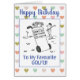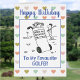 Golfer Geburtstagskarte. Golfer hat auf seinem Golfwagen das Schild "Wie fahre ich?" geschrieben. Personalisieren Sie Ihre persönlichen Daten und Ihre Nachricht. Geburtstagskarte für einen Golfspieler.