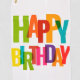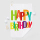 Ein lebendiges Geburtstags-Golf-Handtuch mit kühnen, bunten Briefen, die "Happy Birthday" schreiben.
