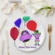 Alles Gute zum Geburtstag Einweg-Party-Teller. Niedliche Space Alien Roboter Mädchen Captain Zoey und Petals Spaceship Cartoon Figuren, mit farbenfrohen rot, blau, grün, gelb fliegenden Ballons. Captain Zoey ist ein glückliches, grünes Robotermädchen, das hallo lächelt und ihre Hand winkt, mit einem rosa Raumkleid mit spitzen Haemen und lila Gürteln und Raumstiefeln mit bunten Blume-Blättern, und dem Aussehen von 3D-Lichtknöpfen auf Handgelenken und Kragen, mit ihrem Freund Petals das Raumschiff ein rosa und lila lächelndes Raumschiffs mit blauen Augen, dem Aussehen, das Aussehen von 3D-Licht bunte Blütenblätter aus der Blume und gelbe Lichtstrahlen, die in die Galaxie hineinragen. Spaß Geburtstagsparty Teller für alle Kinder, die Roboter, Raumschiffe, Außerirdischen und die Erkundung der Galaxie Lieben. Original Grafik Cartoon Figuren © 2014 TamiraZDesign.