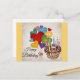 Carte Postale De Voeux D'Anniversaire Avec Ballons Colorés En Forme De Coeur Et Gâteau Au Chocolat