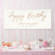 Erstellen Sie Ihr eigenes, individuelles Geburtstagsbanner mit modernem Script-Kalligrafie-Happy-Geburtstag und minimalem Typografiknamen und Datumsdesign für personalisierte Geburtstagsdekoration.