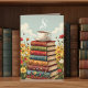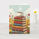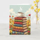 Eine Geburtstagskarte für einen Freund oder ein Familienmitglied, die Kaffee Liebe und liest. Die Abbildung auf der Karte ist ein Stapel Vintager Bücher mit einer warmen, dampfenden Tasse Kaffee auf der Oberseite, umgeben von Blume.