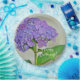 Die Teller dieser Geburtstagszeitung zeigen ein schönes Bild einer Hydrangea-Blüte.
