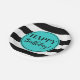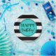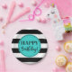 Happy Geburtstag Party Teller in türkisfarben schwarz-weiß Streifen Muster.