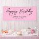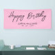 Erstellen Sie Ihr eigenes, individuelles Geburtstagsbanner mit modernem Script-Kalligrafie-Happy-Geburtstag und minimalem Typografiknamen und Datumsdesign für personalisierte Geburtstagsdekoration.