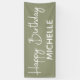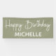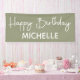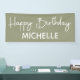 Grundlegendes, schlichtes, grün-weißes "Happy Geburtday"-Party-Banner, das mit dem Namen des Ehrengast in einem skurrilen Skript-Schriftart angepasst wurde.