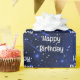 Weiße Sterne auf leuchtend blauen Galaxie Sternmuster mit Happy Birthday Text. Text ist bearbeitbar.