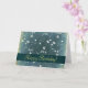 Hübscher, grüner Hintergrund in einem Vintagen Muster mit dunkelgrünem Band. Die malerische und skurrile Dekoration von Klumpen, die auf geschwungenen Zweigen mit extravaganten Blätter und Laub sitzen. Text befindet sich in einem hübschen Schriftart mit Goldskripten. Personalisieren Sie mit Ihrem eigenen Text.
