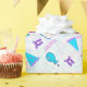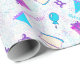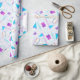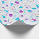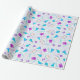Niedliche Geburtstag verpackt Papier in einem fröhlichen Muster von Ballons, Konfetti und Party Hüte in den Schattierungen von lebhaften rosa, elektrisch blau und lila. Die hellen Farben fügen eine Touch von Launen hinzu, die dem fröhlichen Geist jeder Geburtstagsfeier entspricht.