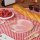 Happy Blume Retro 60er Rosa und Gelb Pappteller