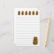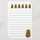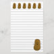 Niedliche braune Cartoon Kartoffel mit einem hübschen Happy Gesichtsausdruck steht unten rechts und über dem Papier steht eine Reihe derselben lustigen Kartoffeln.