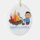 Glücklicher Camper toastet Marshmallow über Lagerfeuer