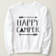 Maßgeschneiderte bedruckte Bekleidung mit trendiger rustikaler "Happy Camper" Anführungsgrafik. Klicken Sie auf Anpassen, um das Design mit Ihrem eigenen Text und Bildern zu personalisieren. Wählen Sie aus einer Vielzahl von Shirt-Stilen und -Farben.
