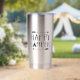 Benutzerdefinierte bedruckte Tassen und Tumbler mit trendigem Schwarz-Weiß-Design "Happy Camper" mit Stamm-Pfeil-Rahmen und niedlicher Teepee-Grafik. Verwenden Sie die Entwurfswerkzeuge, um eigene Texte und Fotos hinzuzufügen, um ein Design zu erstellen, das einem guten Design entspricht.