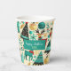 Celebrate the season with a whimsical Christmas forest pattern featuring trees, reindeer, ornaments and snowflakes in cozy teal, gold and red tones. The front panel text can be personalized with your own holiday greeting and year, making it perfect for Christmas parties, winter birthdays, office celebrations and festive hot drinks. Ideal for coordinating with matching napkins, plates and other party supplies from the same collection to create a charming, cohesive holiday table.