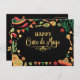Diese Postkarte ist eine faszinierende Einladung zu Cinco de Mayo Festlichkeiten, die mit einem festlichen Flair gestaltet wurden. Der reiche schwarze Hintergrund Set die Bühne und sorgt für einen dramatischen Kontrast, der jedes Element im Design-Pop mit Lebendigkeit auszeichnet. Der zentrale Gruß "HAPPY Cinco de Mayo" ist elegant in einem strahlenden vergoldeten Schriftart gestaltet, der dem traditionellen Fest ein luxuriöses Ambiente verleiht. An den oberen und unteren Rand der Karte grenzen, sind spielerische Illustrationen, die den Geist des Urlaubs verkörpern. Dazu zählen bunte Sombreros mit aufwändiger Stickerei, lebhafte Maracas, geistgrüne Kakteen und gewagte, rote Chili-Paprikaschoten, die jeweils mit einem charmanten Detailreichtum versehen sind. Die Illustrationen sind Set inmitten einer Reihe heller, dekorativer Motive, einschließlich Blume und abstrakter Formen, die dem Kunsthandwerk und der natürlichen Schönheit, die gleichbedeutend mit mexikanischer Kultur sind, einen Riegel vorschieben. Eine farbenfrohe Kette von Papelpicado, die traditionelle mexikanische Dekoration aus Schnitzpapier, fügt dem Grund eine reizvolle Grenze hinzu und trägt mit ihren roten, gelben und grünen Fahnen zum allgemeinen Fest bei. Das Design wird durch kleine, leuchtende Orben ergänzt, die eine Touch von Launen hinzufügen, als würde man das Funkeln der Festlichter nachahmen. Diese Postkarte verbindet klassische Elemente von Cinco de Mayo mit einer modernen Gestaltungsfreude und ist somit ein ideales Stück für feierliche Gruß oder die Einladung von Freunden und Familie zu einer Cinco de Mayo Feier.