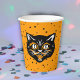 Happy Classic Halloween Black Cat Face on Stars Pappbecher