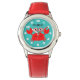 Kinderuhr aus Edelstahl mit rotem Lederarmband