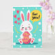 This design shows a stylized white bunny with long ears facing forward on an aqua background, cheeks tinted rosy as its eyes rest closed in a soft, content expression 🐰. Its small paws hold a large decorated egg with fuchsia and yellow patterns, like a sweet gift being offered to someone special. The gentle tilt of its head and the careful way it hugs the egg suggest affection, like a quiet moment between close friends. To the upper right, a yellow speech bubble carries the words “For you!” in a darker contrasting tone, placed so it feels like the bunny is speaking directly to the viewer 🌷. Along the left side, several pink hearts float upward, adding a romantic touch without crowding the main figure. Curvy yellow squiggles curl around the scene, bringing a light sense of motion as if the air is buzzing with excitement. Small white circles are sprinkled across the turquoise backdrop like confetti or bubbles, with the brightest cluster near the bunny’s shoulders and around the speech bubble.