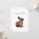 Süßes Kaninchenjungtier schaut erwartungsvoll auf weißem Untergrund.