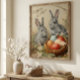 Happy easter bunnies with easter eggs in basket Poster