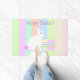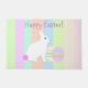 A simple, and pretty design with a cute Easter bunny sitting beside 2 pink, and yellow Easter eggs