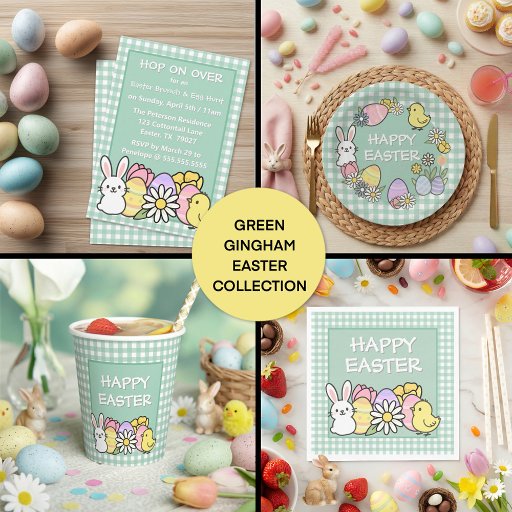Happy Easter Bunny Chick Eggs Green Gingham