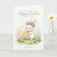 Send the sweetest Easter wishes with this adorable bunny and chick hugging scene! A fluffy white bunny wearing a beautiful flower crown gently hugs a tiny yellow chick with a cute pink bow tie. Colorful decorated Easter eggs, two sweet snails, floating hearts, and a soft rainbow watercolor background create a magical spring meadow. Beautiful watercolor style, blank inside with editable message. Perfect for Easter, spring, or any animal lover!