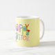 This bright and playful Easter mug features the phrase “HAPPY EASTER” in a rainbow of bold, festive colors. Each letter has its own personality—some patterned like Easter eggs, others accented with sweet spring florals—creating a joyful, celebratory look. The soft yellow background adds warmth and makes the colorful typography pop beautifully.