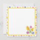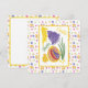 Original illustration in oil pastel of a large colorful decorated Easter egg with a little chicken, sunshine and grape hyacinth. With customizable text saying Happy Easter and Easter floral pattern frame. On the back side is blank space for text with Easter pattern frame and small daffodil Easter illustration in the corner.