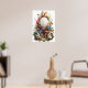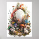Grosses Osterposter mit einem großen Ostereier und niedlichen Tieren wie Osterhasen oder Kaninchen. Magische Fantasy Forest Blumenkunst mit Blume und bezaubernden Tieren. Rieseneier zu Ostern.